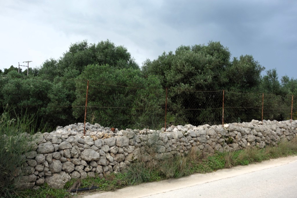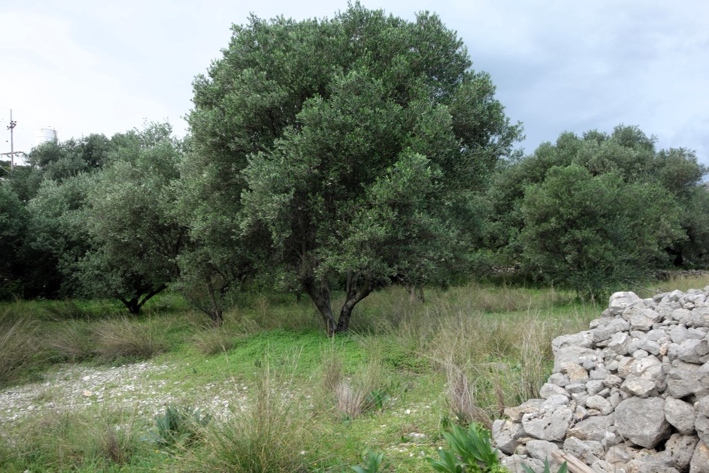 It is fenced with an old stone fence, an iron gate, and inside there are old olive  trees.